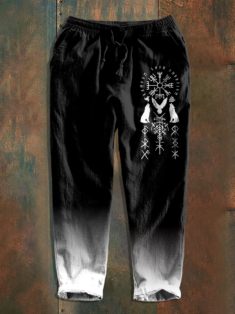 Gradient Viking Wolf Ethnic Patterns Art Linen Drawstring Trousers