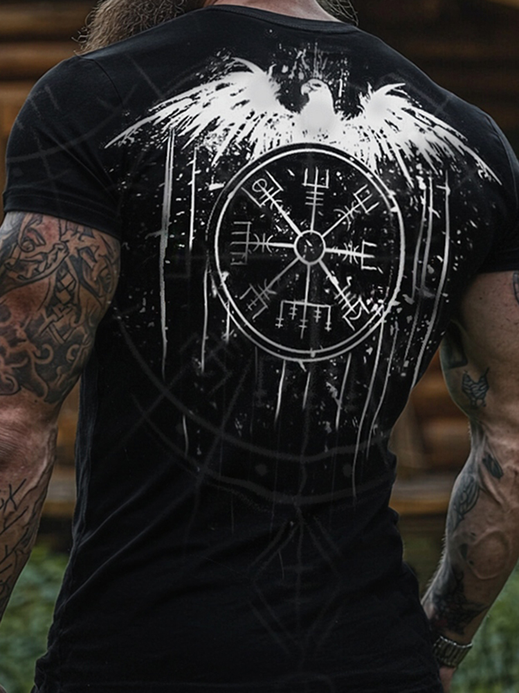 Men's Viking Raven Print Casual Short Sleeve T-shirt