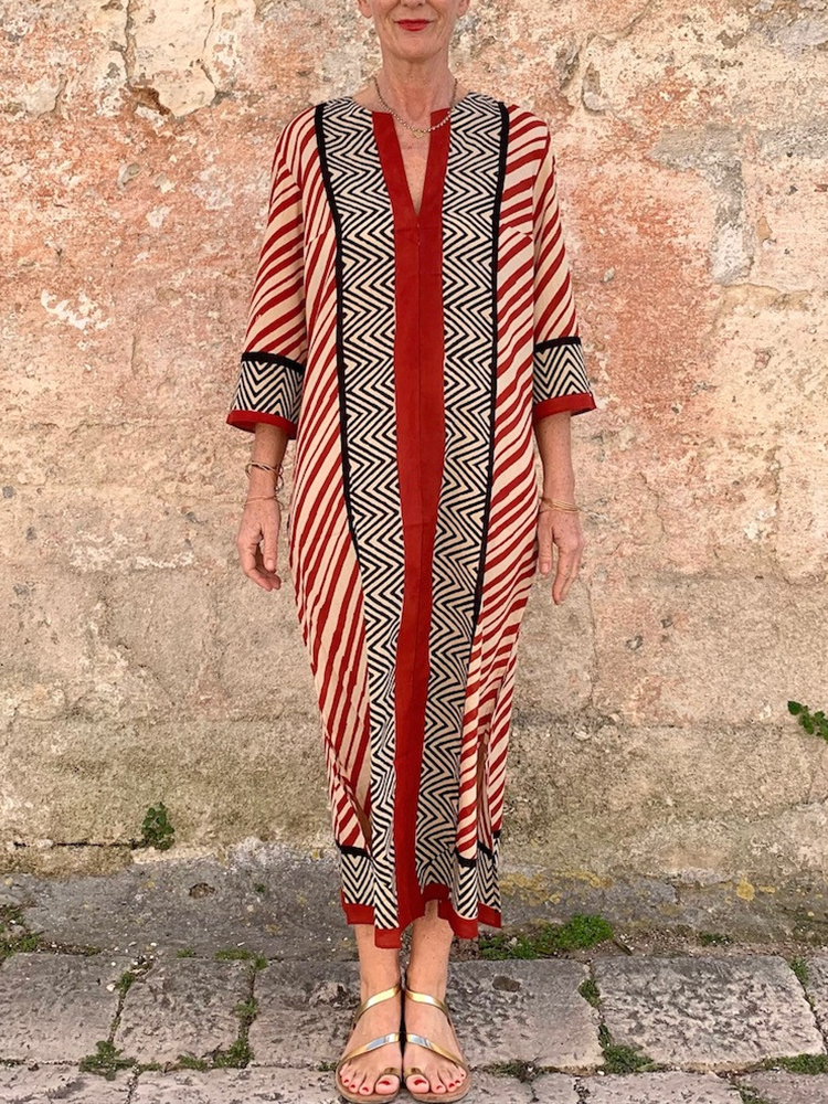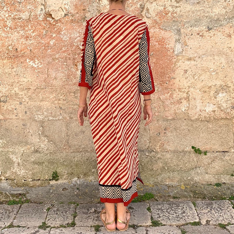 Abstract Art Striped Print Linen Blend Dress