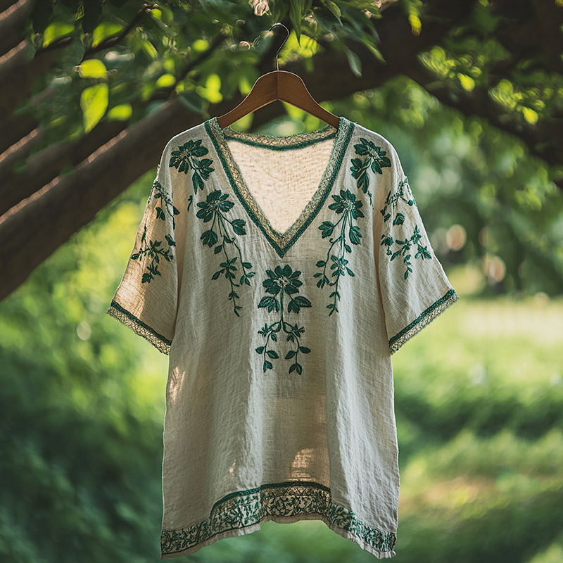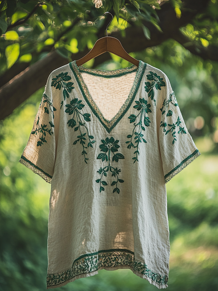 Women's Bohemian Vacation Retro Floral V-neck T-shirt