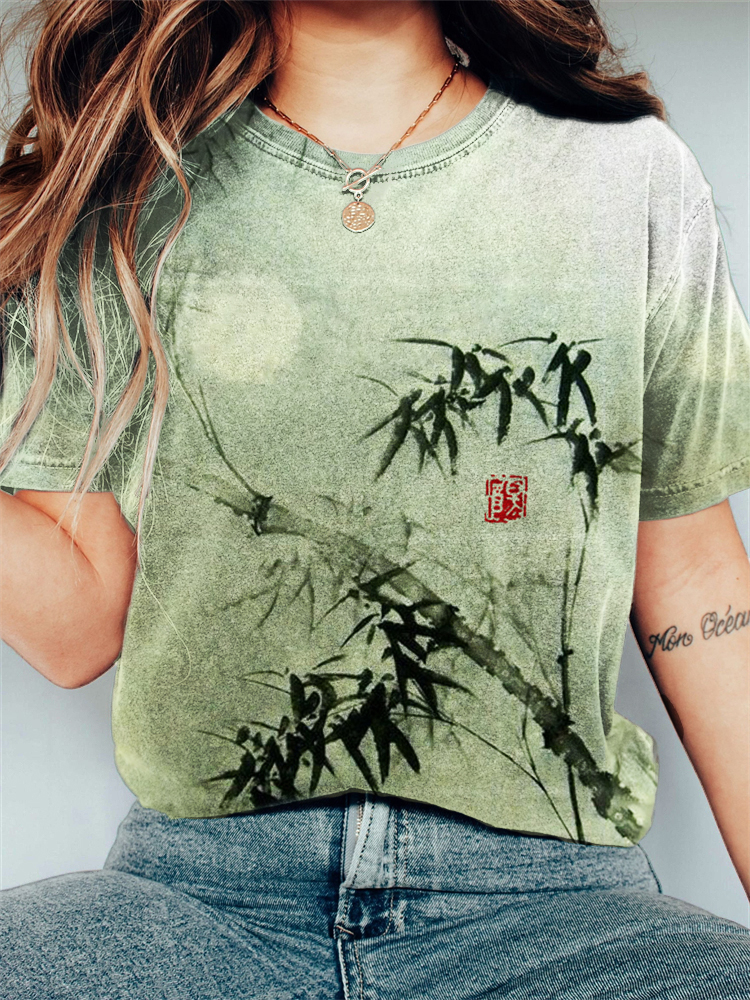 Bamboo Forest Full Moon Japanese Art T Shirt