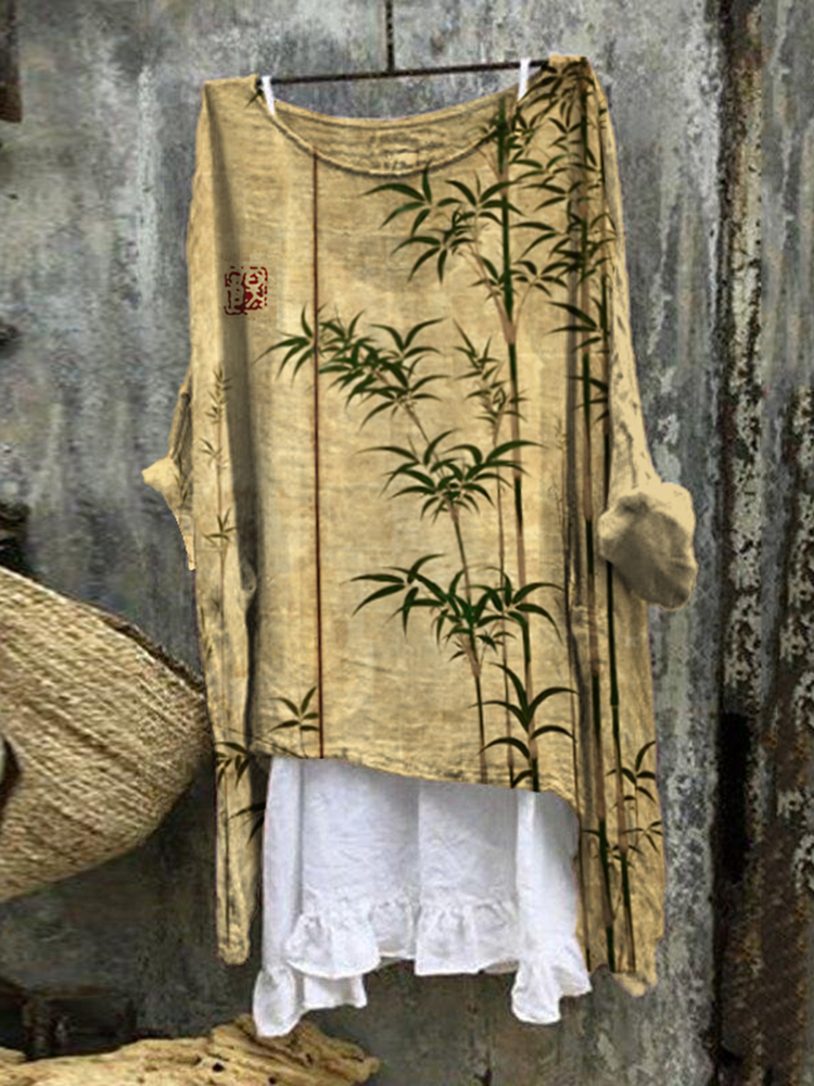 Bamboo Japanese Art Loose V Neck Casual Shirt