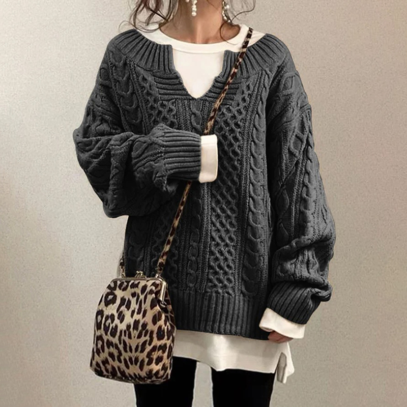 Casual Knit V Neck Linen Pattern Sweater