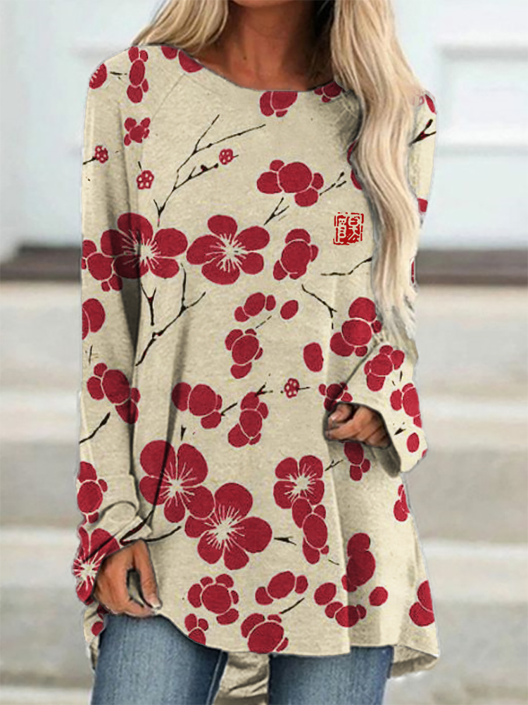 Cherry Blossom Japanese Lino Art A Line T Shirt