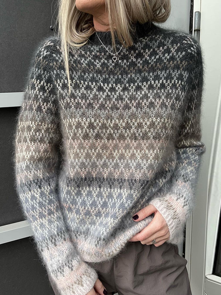 Contrast Color Knitted Vintage Casual Sweater