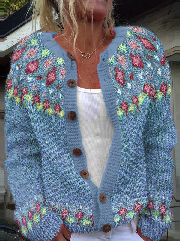 Fairman Island Geometric Contrast Sweater Cardigan