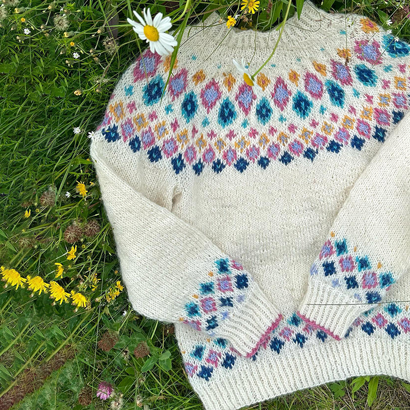 Geometric Diamond Contrast Print Crew Neck Long Sleeved Sweater