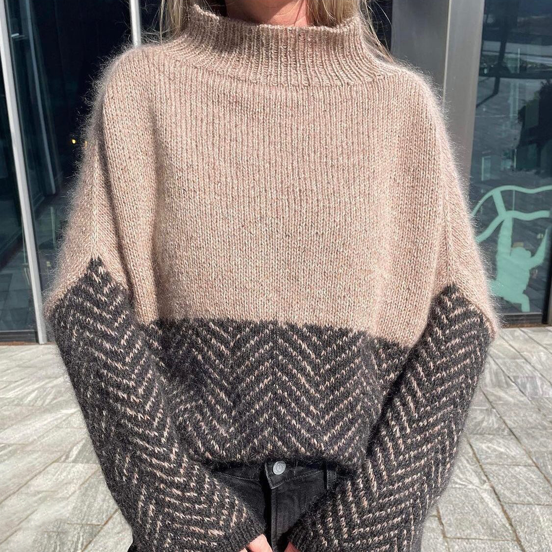 Herringbone Patchwork Solid Color Turtleneck Sweater