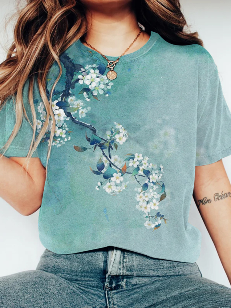 Japanese Antique Pear Blossom Ink Painting Print T-Shirt