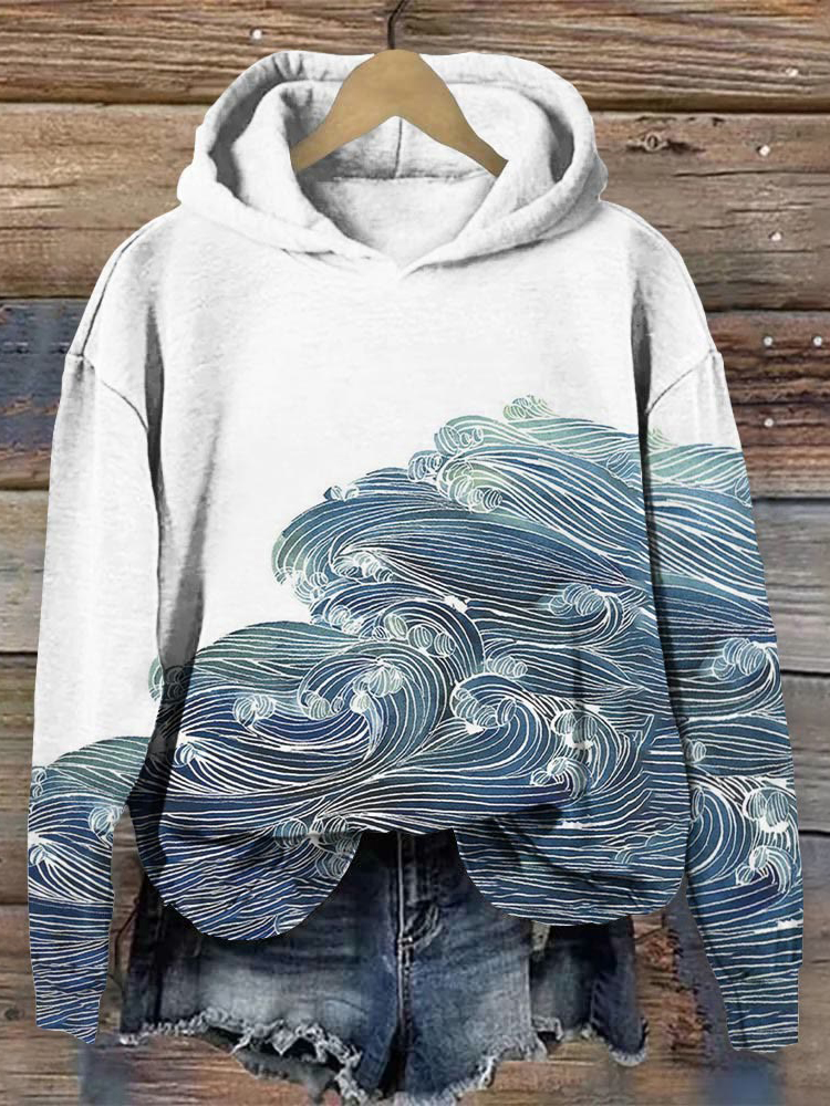 Japanese Art Gradient Wave Print Hoodie