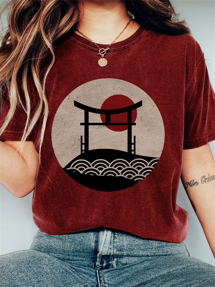 Japanese Shinto Shrine Sunrise Vintage Washed T Shirt