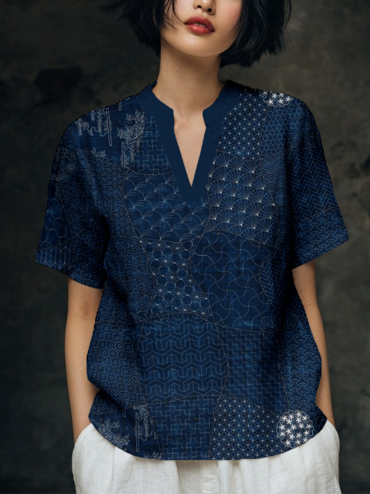Japanese Traditional Sashiko Art Comfy Linen Tunic