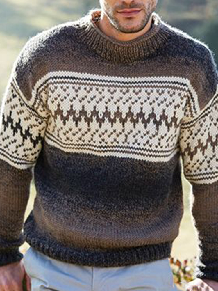 Men's Vintage Fairman Island Knit Jacquard Crew Neck Sweater