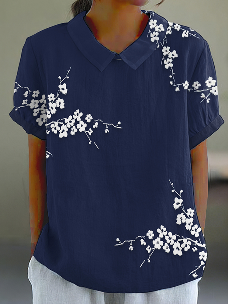 Retro Floral Art Print Casual Cotton Linen Shirt