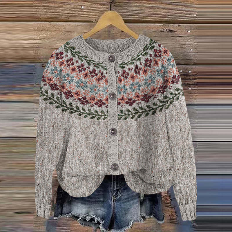 Retro Floral Knitted Button Down Cozy Sweater