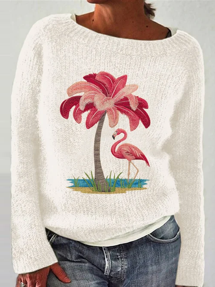 Retro Geometric Coconut Palm Flamingo Jacquard Iceland Sweater