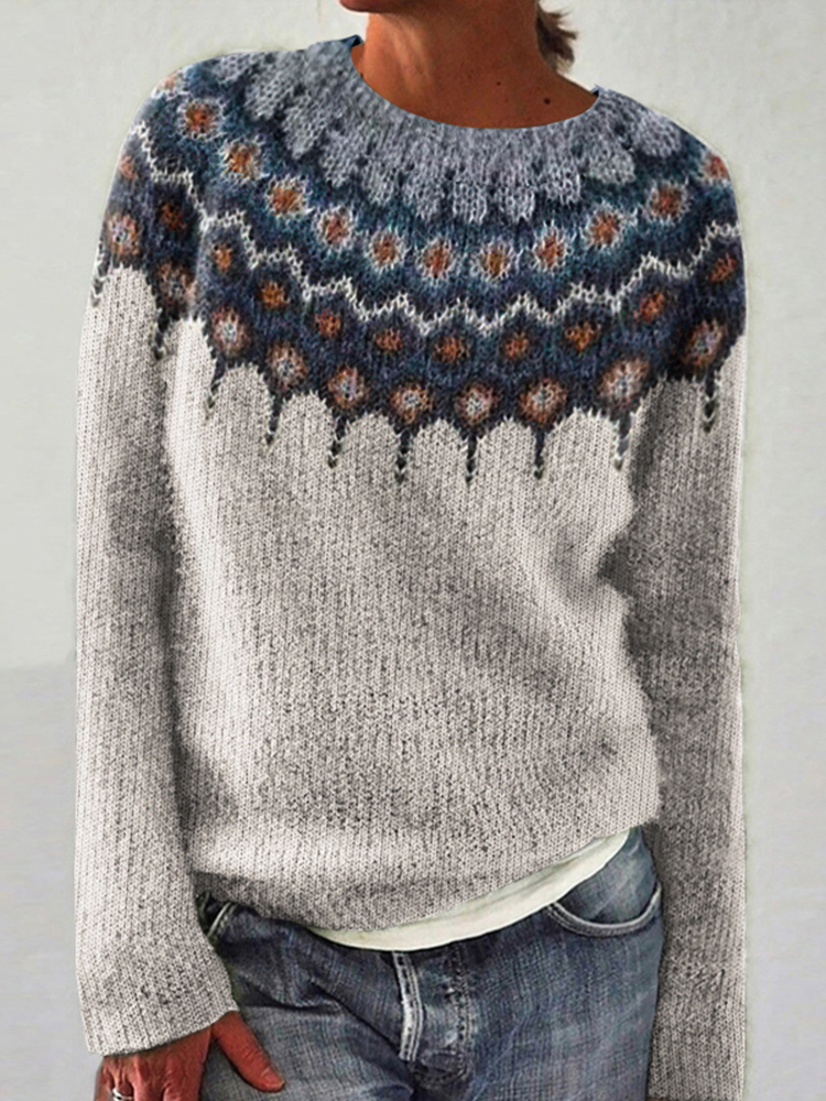 Retro Icelandic Pattern Knitted Round Neck Cozy Sweater