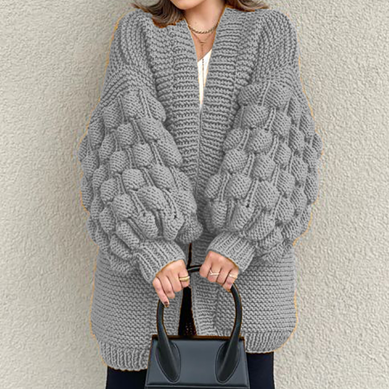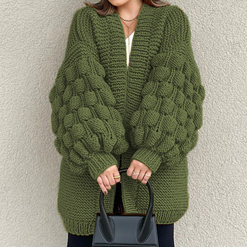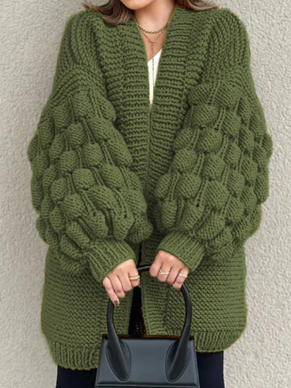 Retro Loose Puff Sleeves Thick Wool Knitted Cardigan