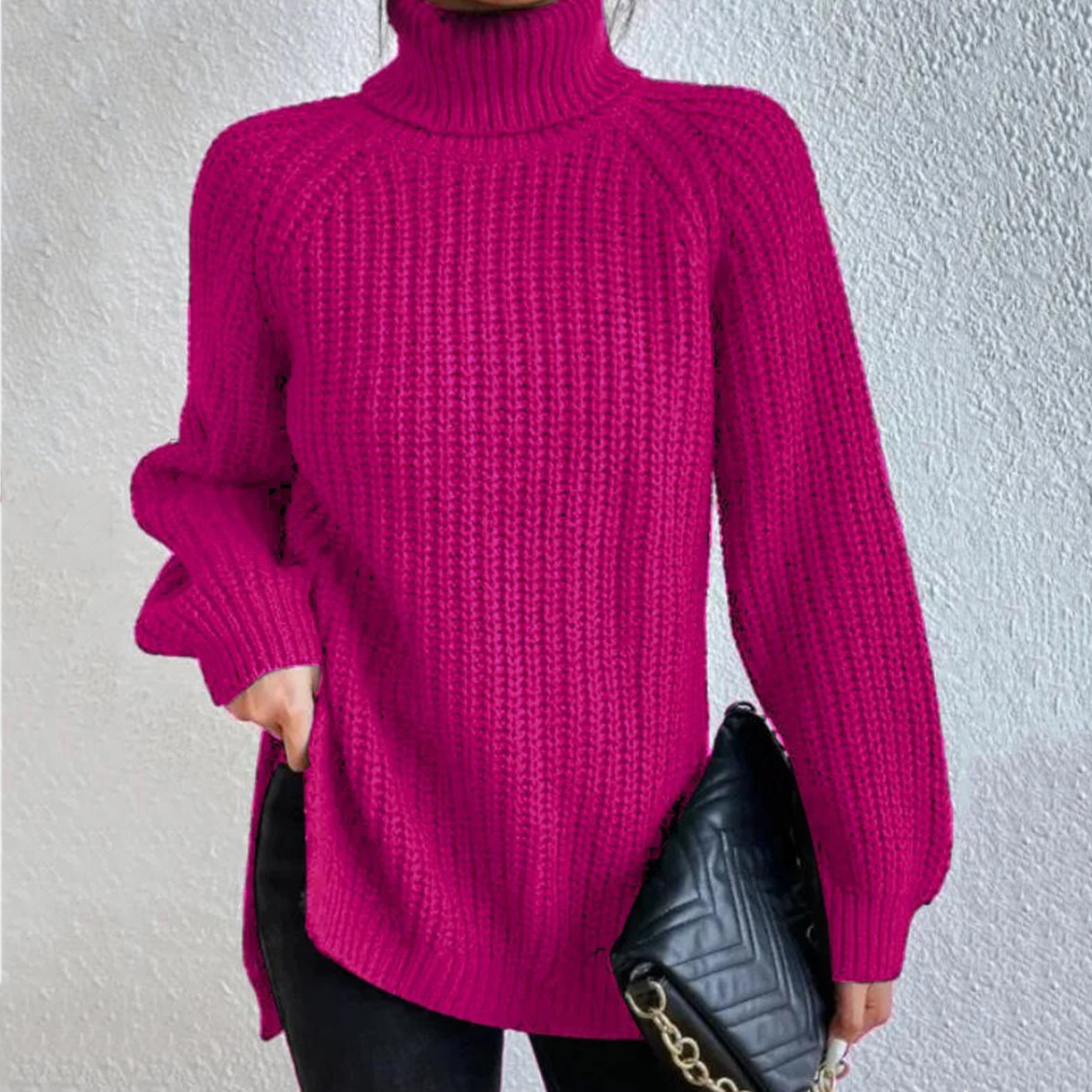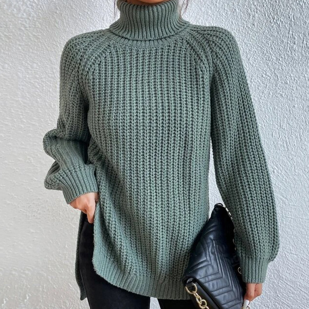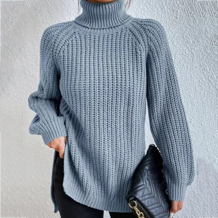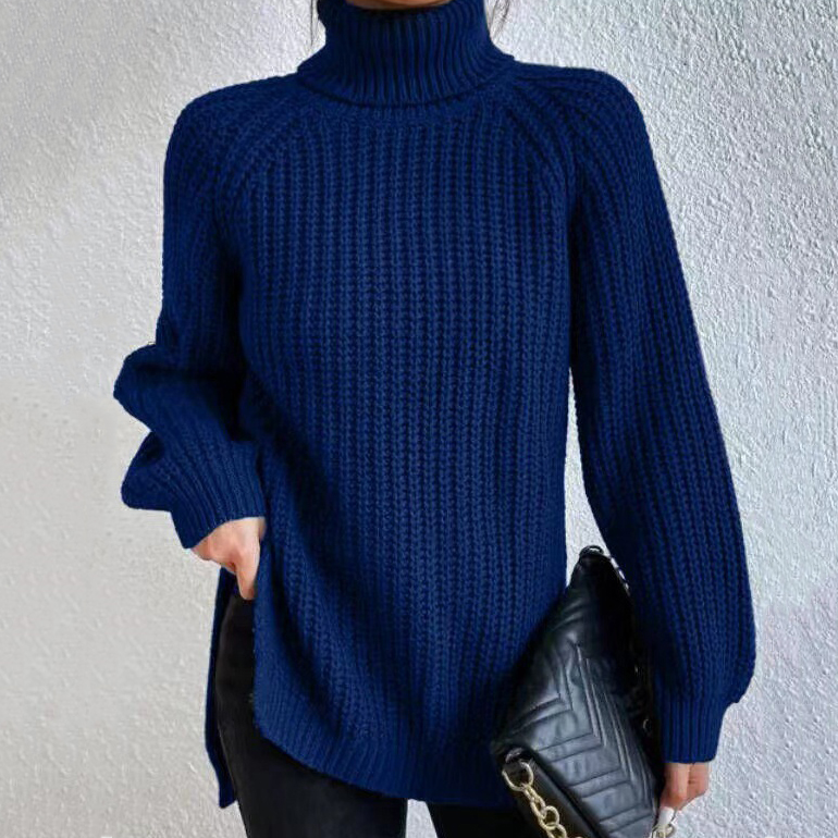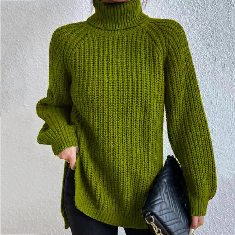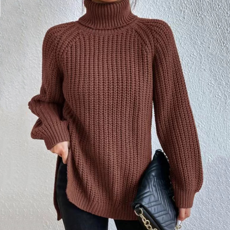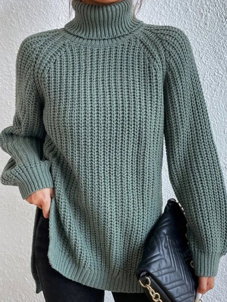 Retro Mid Length Raglan Sleeves High Lapel Split Sweater