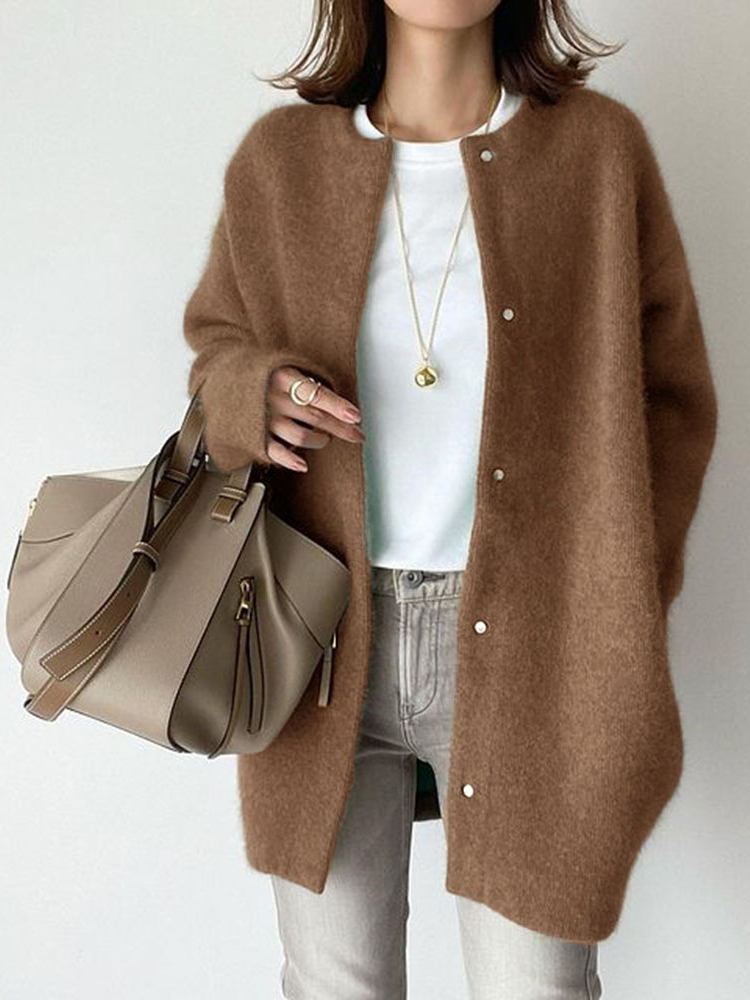 Retro Solid Color Loose Button Pocket Knitted Cardigan