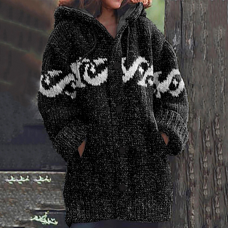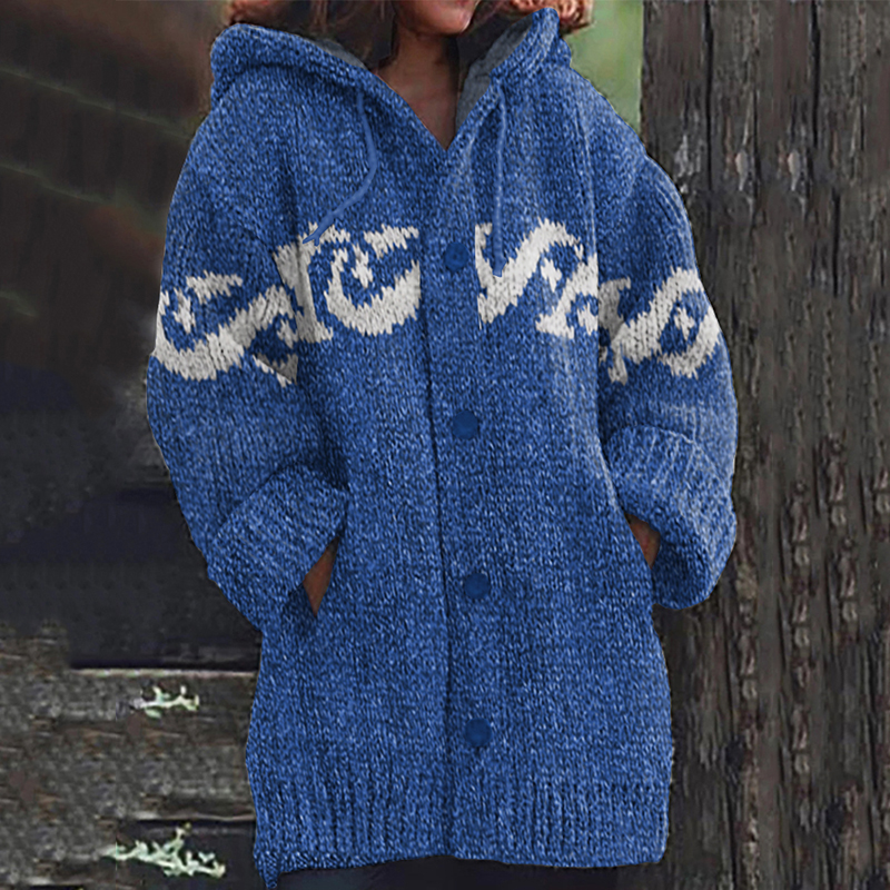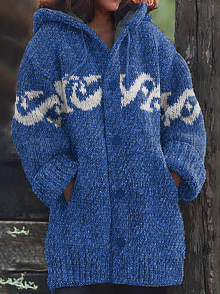 Retro Surf Jacquard Knit Cozy Cardigan Sweater