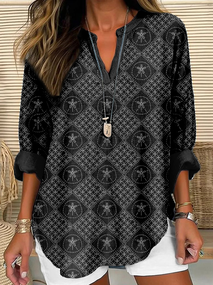 Sashiko Sand Dollar Japanese Art Linen Blend Shirt