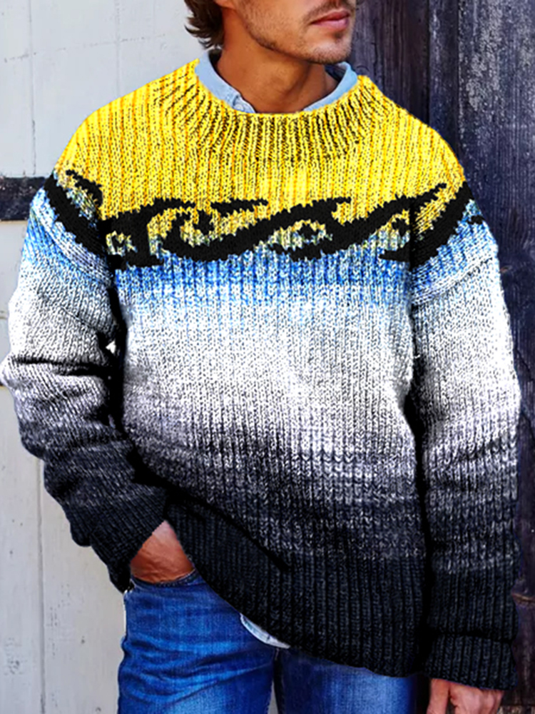 Stylish Gradient Surf Jacquard Crew Neck Sweater