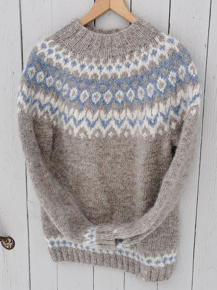 Unisex Vintage Icelandic Leaf Knit Jacquard Crew Neck Sweater