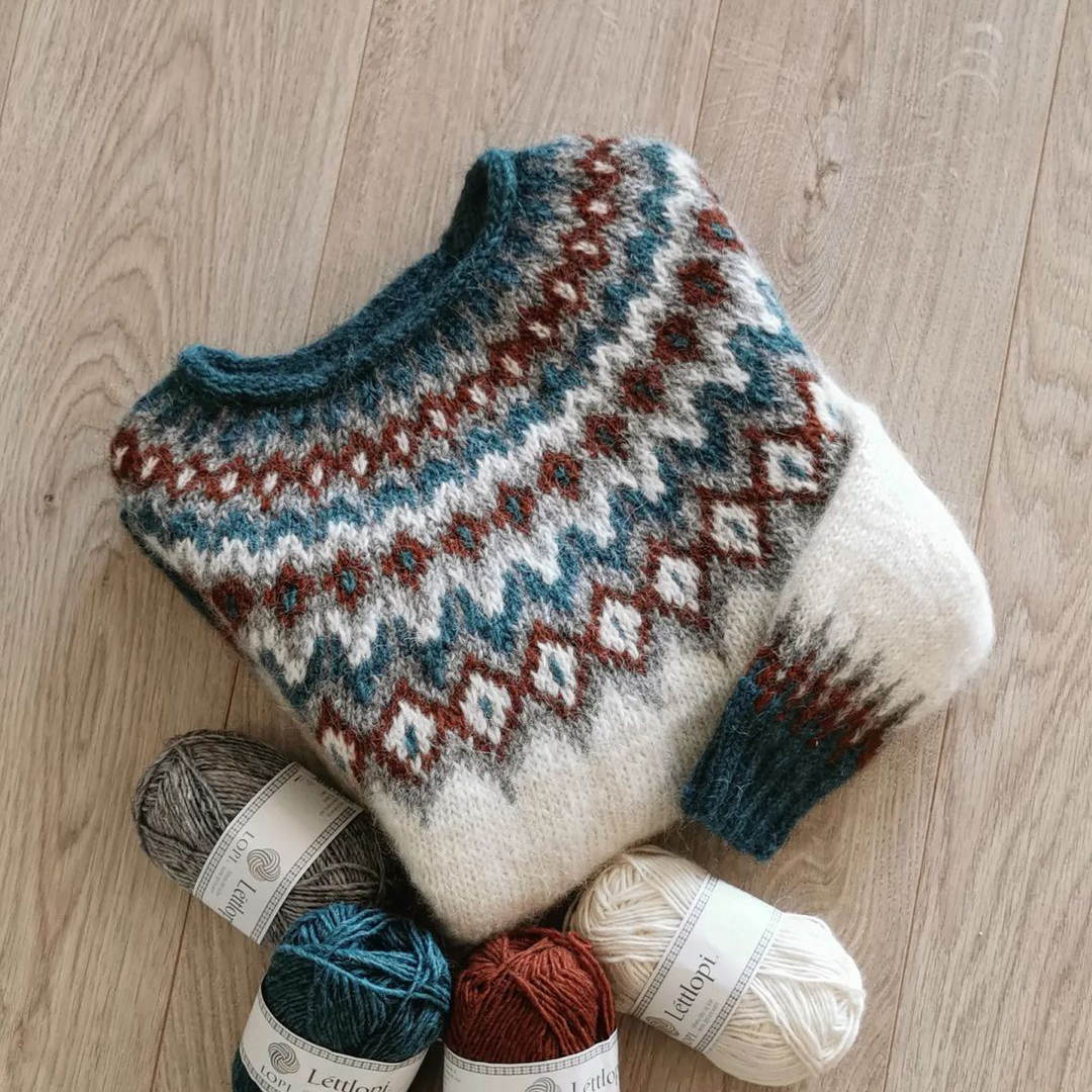 Unisex Vintage Icelandic Leaf Knit Jacquard Crew Neck Sweater