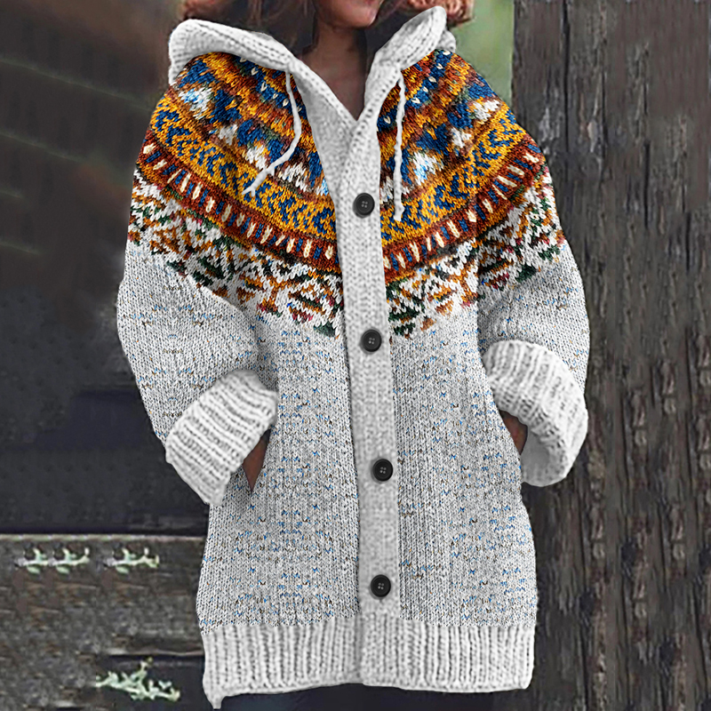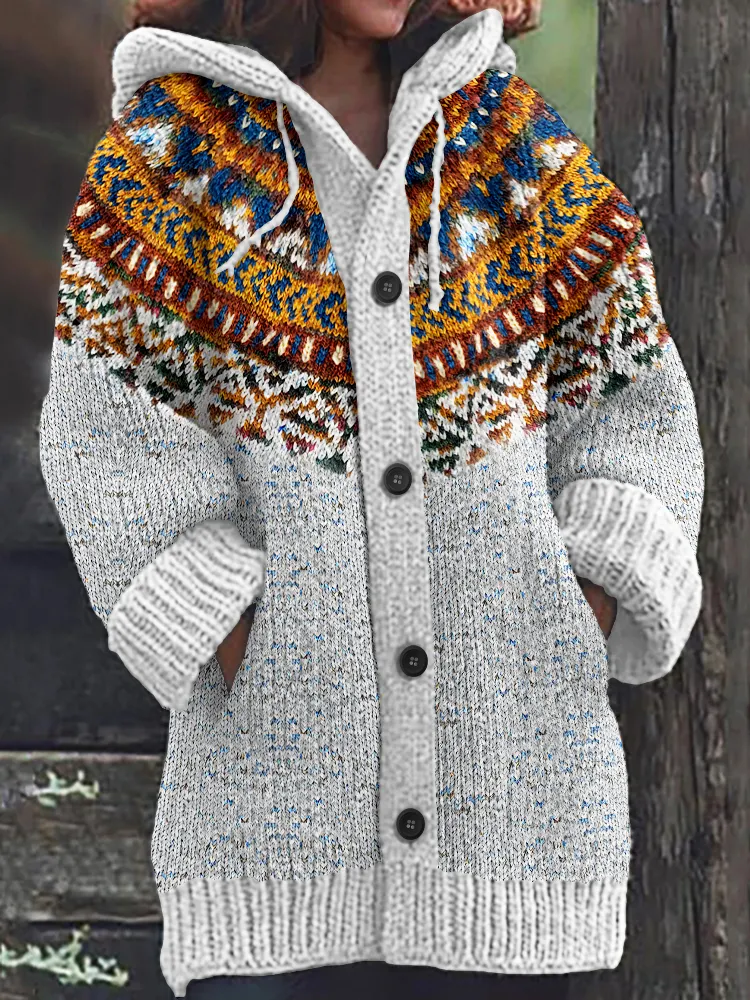 Vintage Color Block Jacquard Button Down Cozy Sweater