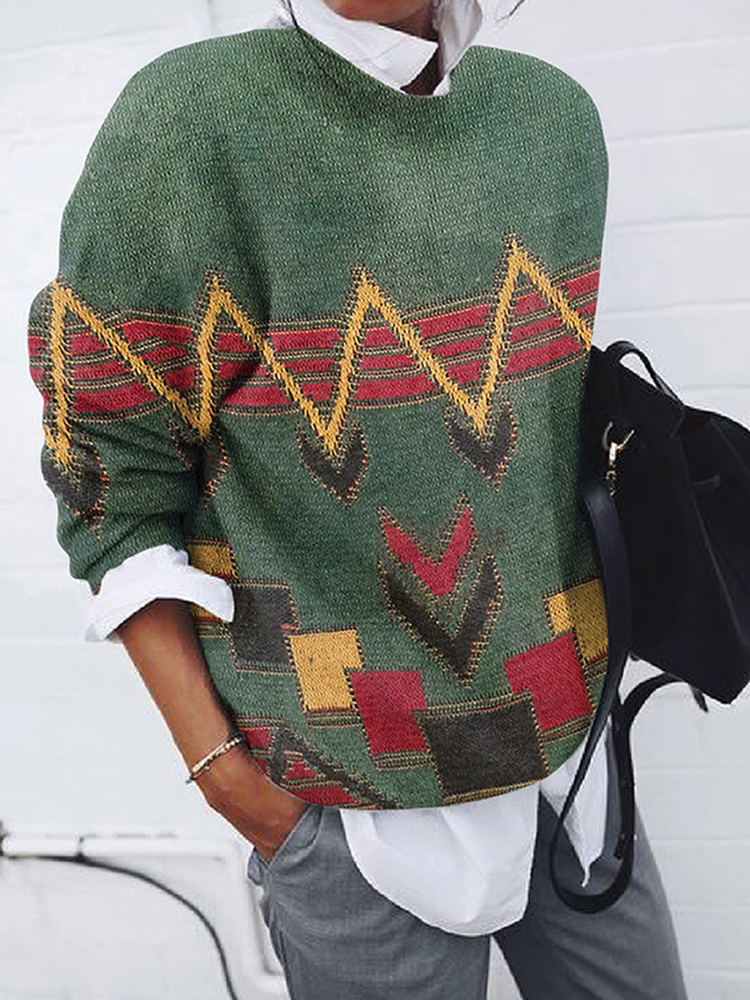 Vintage Contrasting Geometric Wave Pattern Women's Sweater