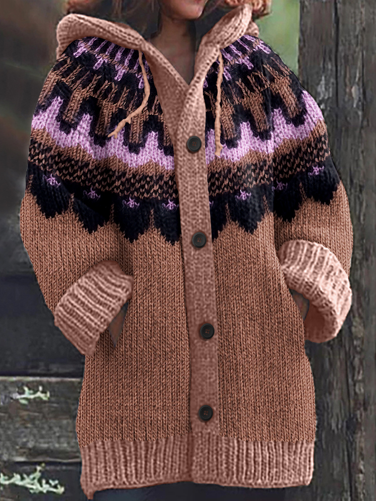 Vintage Ethnic Geometric Pattern Contrast Sweater Cardigan