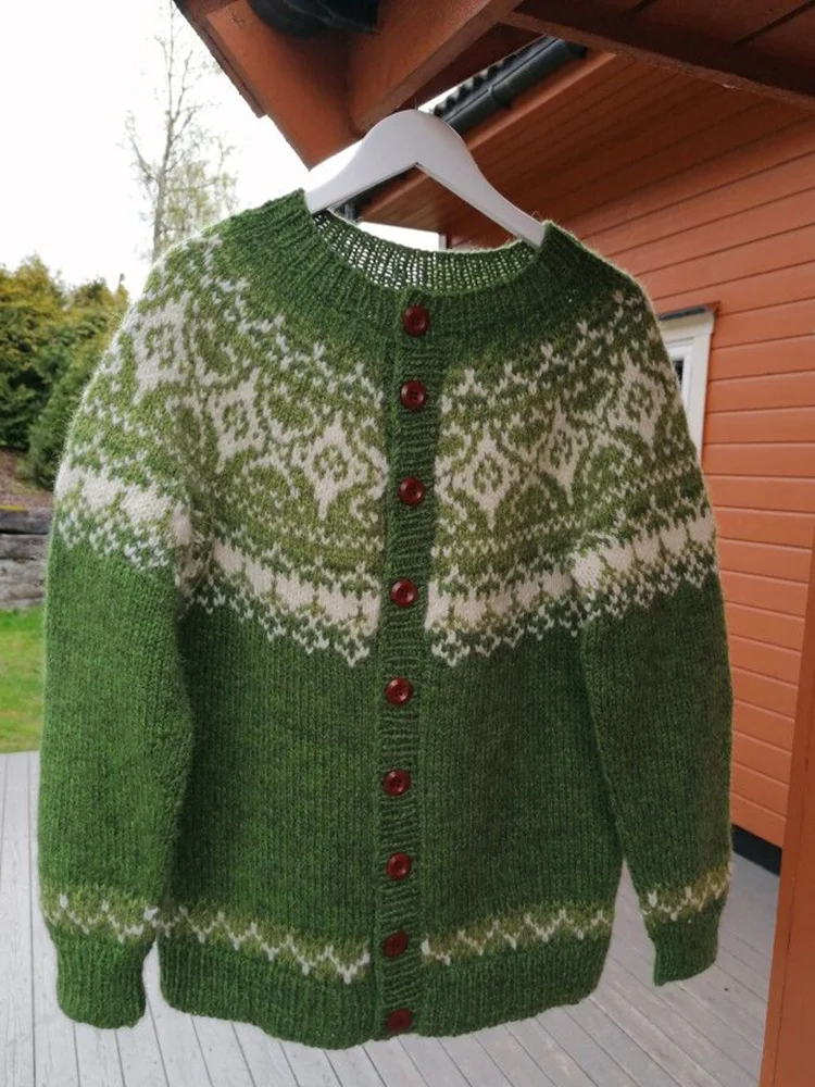 Vintage Fel Island Jacquard Button Comfy Sweater