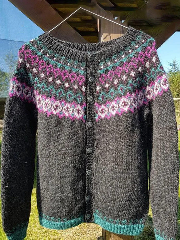 Vintage Fel Island Jacquard Button Comfy Sweater