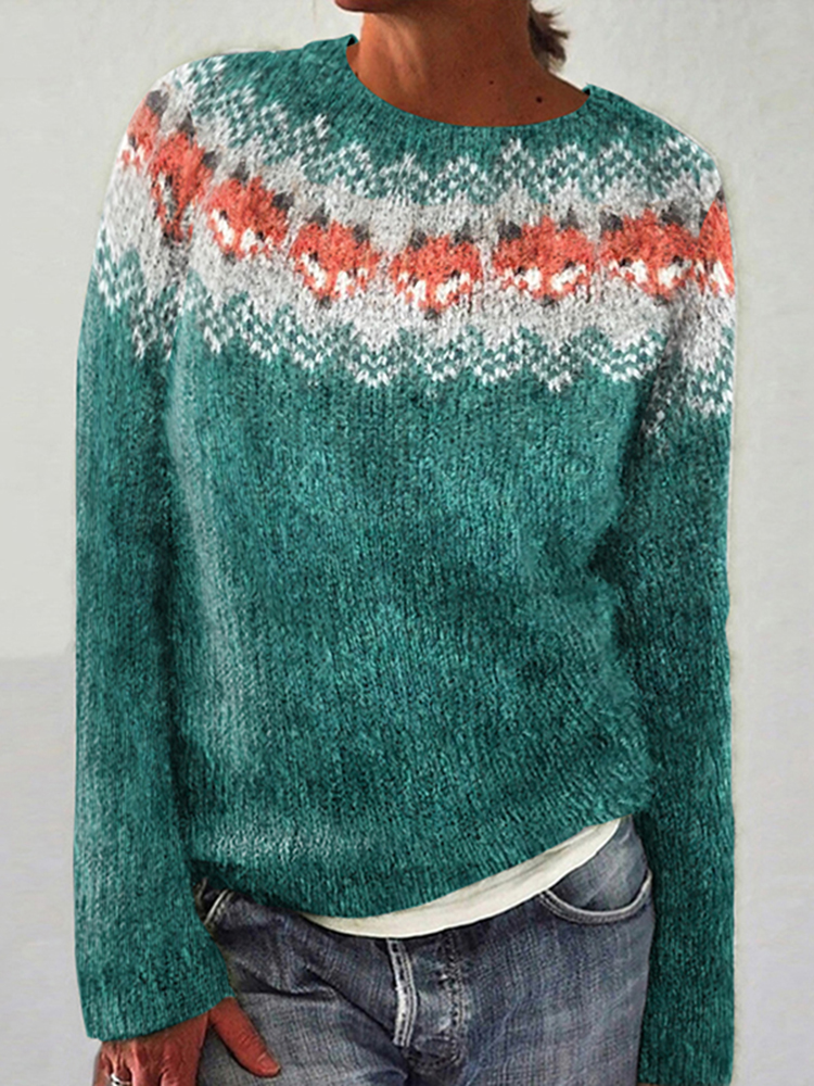 Vintage Fox Jacquard Crew Neck Sweater