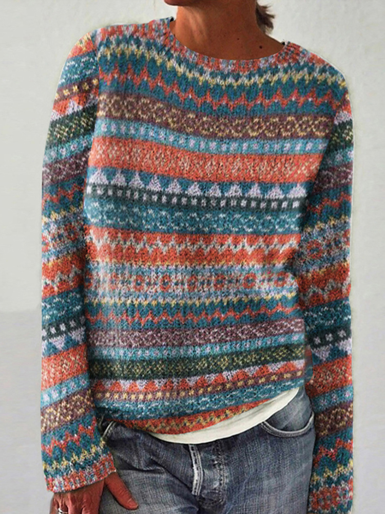 Vintage Geometric Contrast Print Crew Neck Sweater