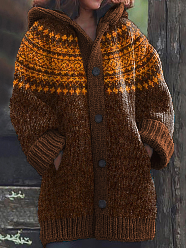 Vintage Geometric Cozy Knit Hooded Cardigan