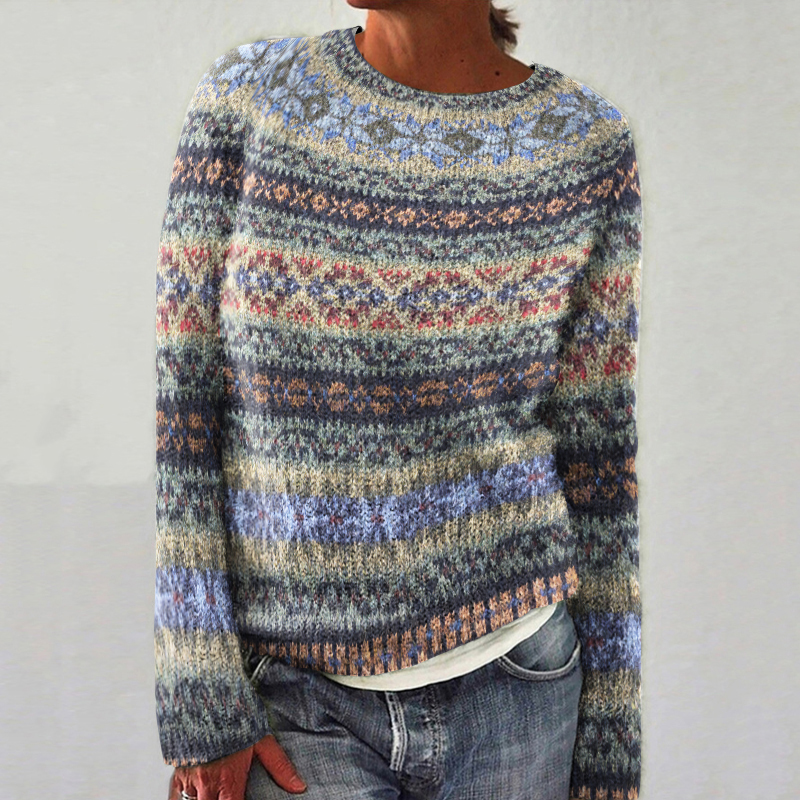 Vintage Geometric Ethnic Pattern Print Crew Neck Sweater