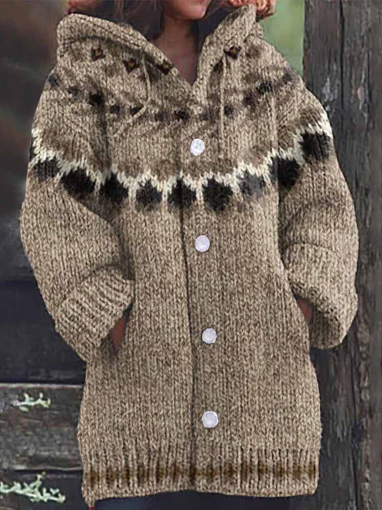 Vintage Geometry Icelandic Pattern Cozy Cardigan Sweater