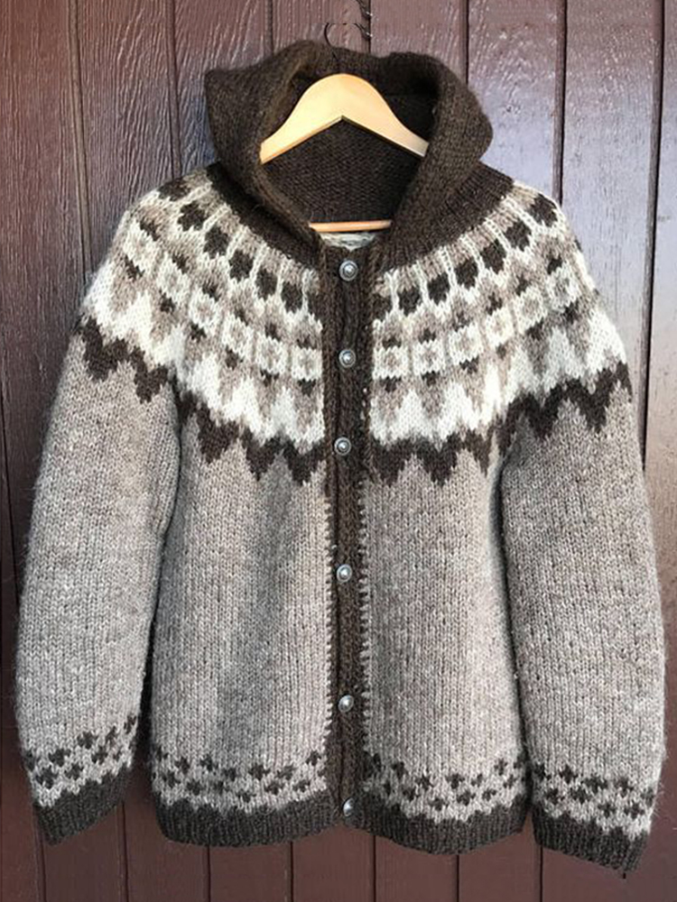 Vintage Icelandic Button Cozy Warm Sweater Hooded Cardigan
