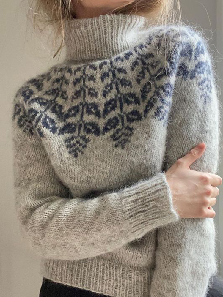 Vintage Icelandic Geometric Contrast Mid Neck Sweater