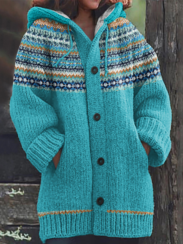 Vintage Icelandic Irregular Geometry Women's Knitted Sweater