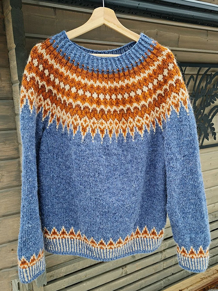 Vintage Icelandic Jacquard Knitted Pattern Cozy Sweater