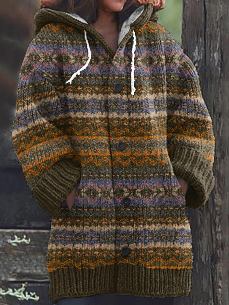 Vintage Icelandic Knit Jacquard Warmth Print Women's Sweater