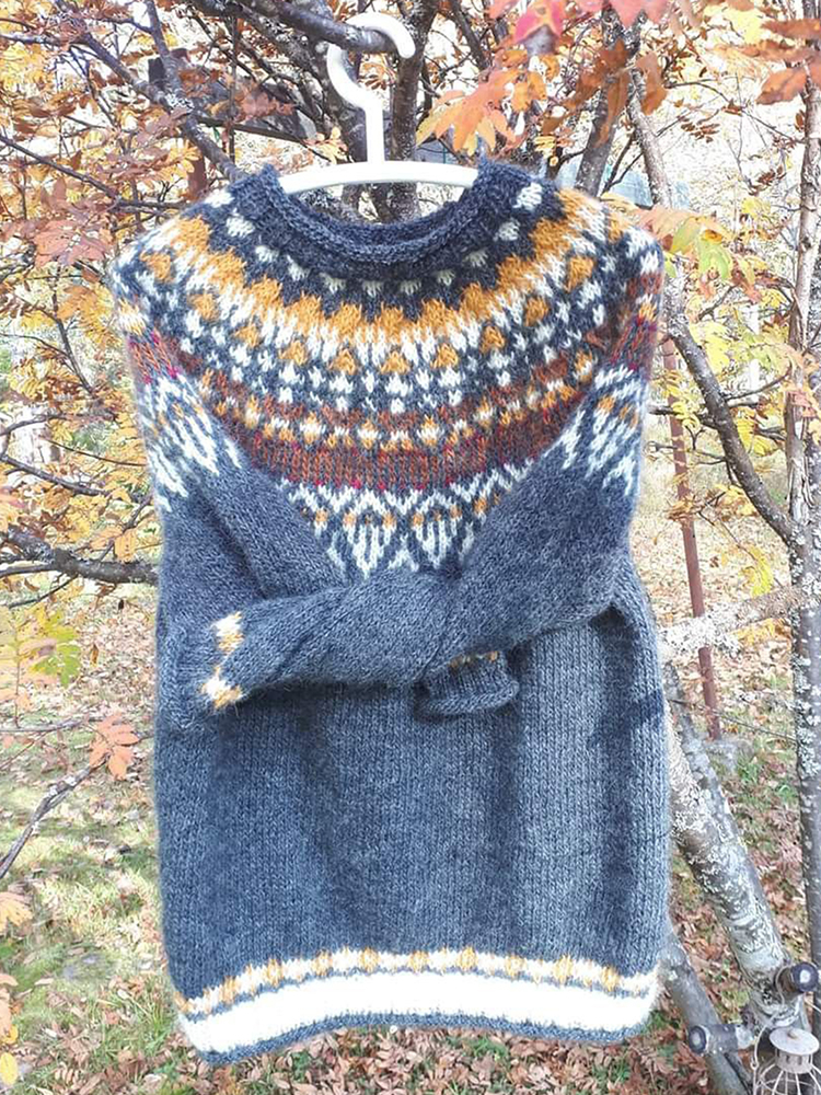 Vintage Icelandic Knitted Jacquard Sweater (Unisex)