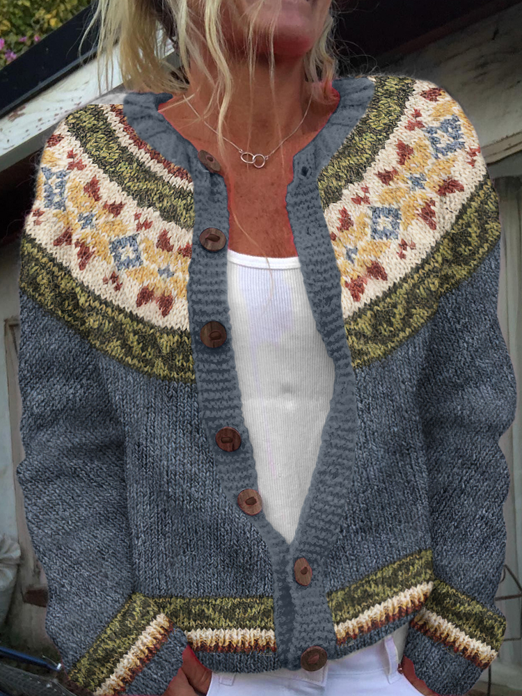 Vintage Icelandic Pattern Art Print Cozy Button Sweater