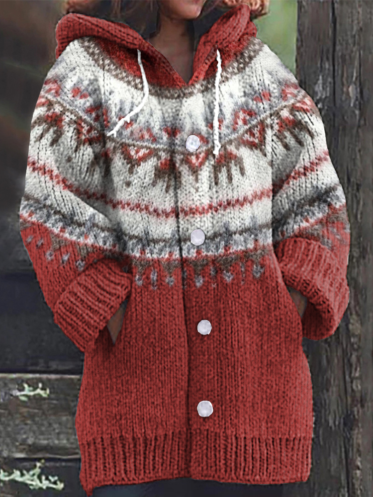 Vintage Icelandic Pattern Cozy Cardigan Sweater