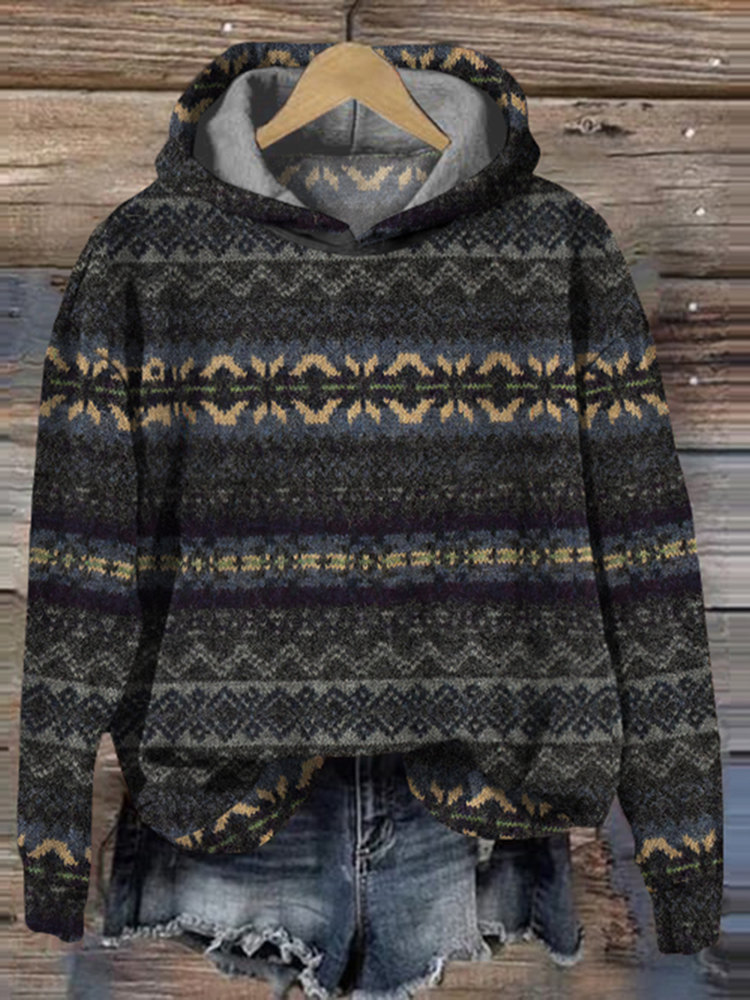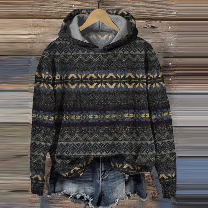 Vintage Icelandic Pattern Cozy Hoodie Sweater
