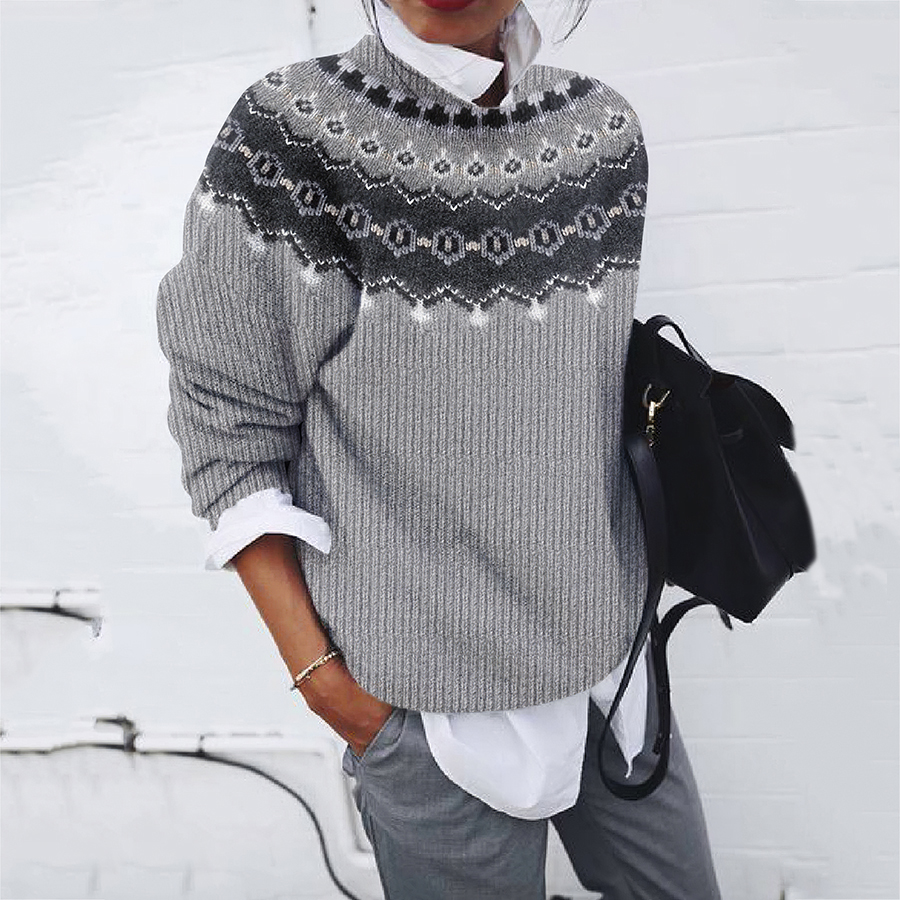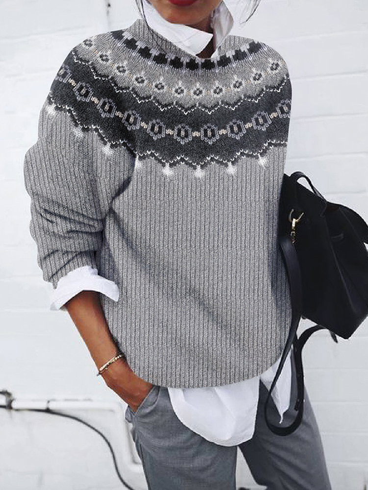 Vintage Icelandic Pattern Knitted Jacquard Crew Neck Sweater