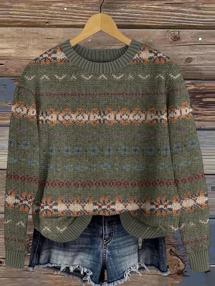 Vintage Icelandic Pattern Knitted Sweater